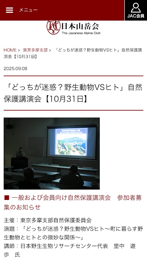 主催: 東京多摩支部自然保護委員会